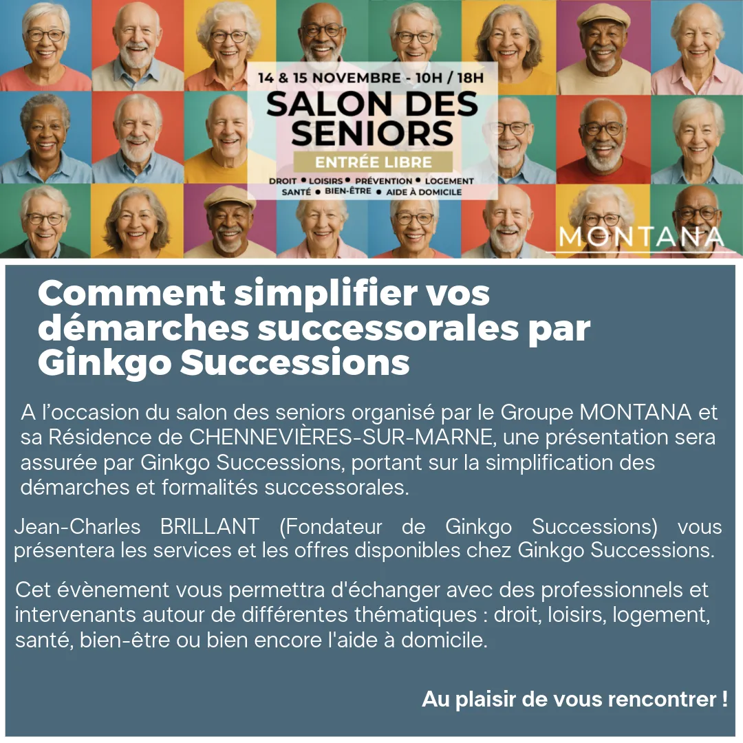 À l’occasion du salon des seniors qui s’est tenu les 14 et 15 novembre, GINKGO SUCCESSIONS est intervenu sur le thème de la simplification des démarches et formalités successorales.